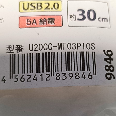 そんなゲーム対策として、Type-Cケーブルにスイッチを増やすケーブル「U20CC-MF03P10S」を購入しました!