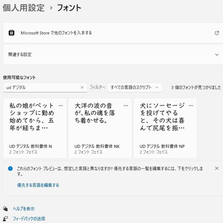 Windows11の24H2の更新で、フォントが統合されたっぽいです。