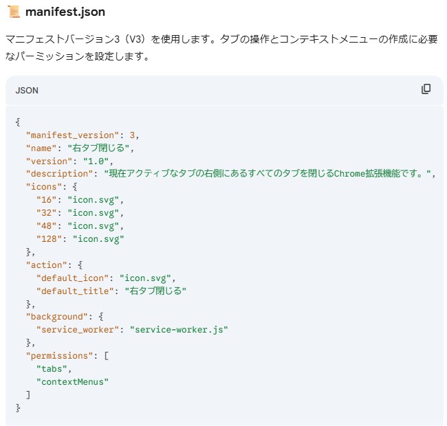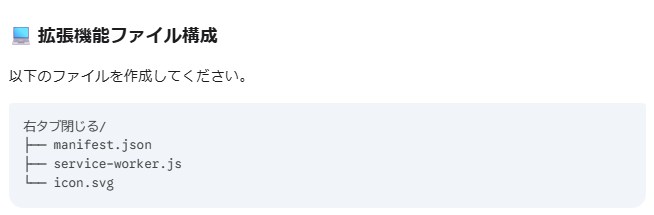 「タブを閉じるだけ」というシンプルな機能なので、ファイル構成も少なめです。