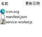 ③「icon.svg」「manifest.json」「service-worker.js」に、拡張子ごと書き換える