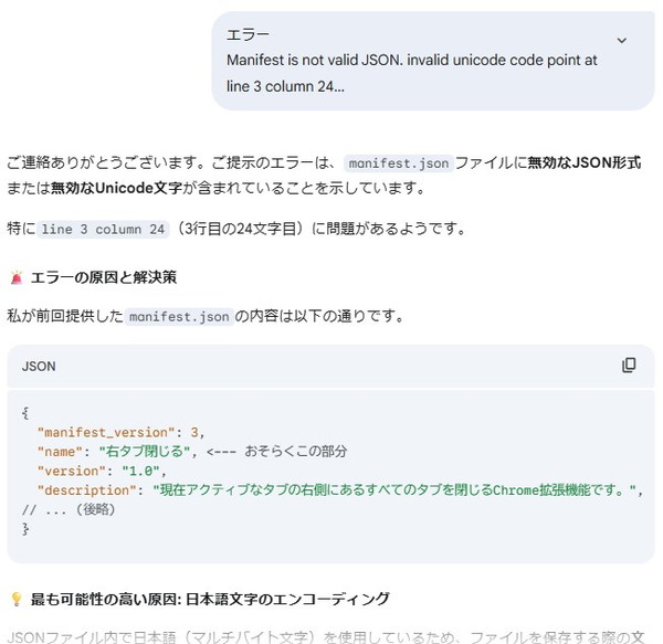 エラーが出たら、AIにこの質問をそのまま貼り付けてやれば、何かしら改良して返ってきます。