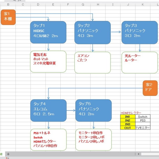 電源タップの多い部屋の配線がややこしい… →図に書いてみよう