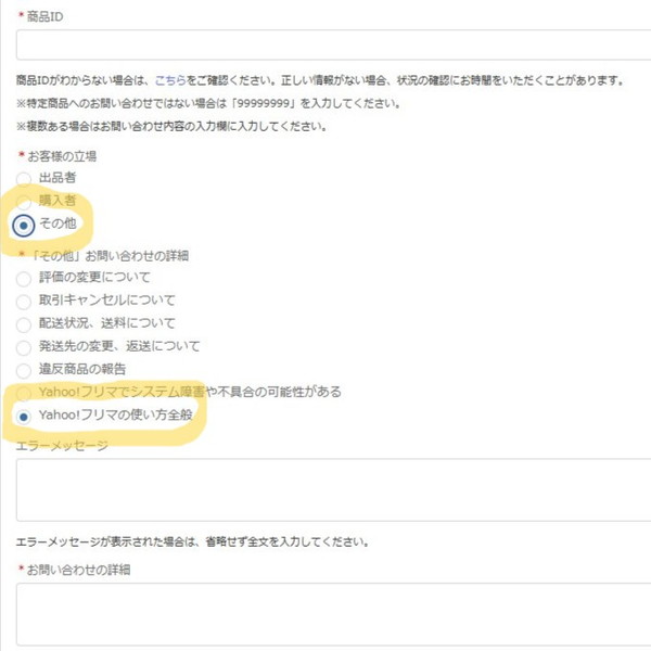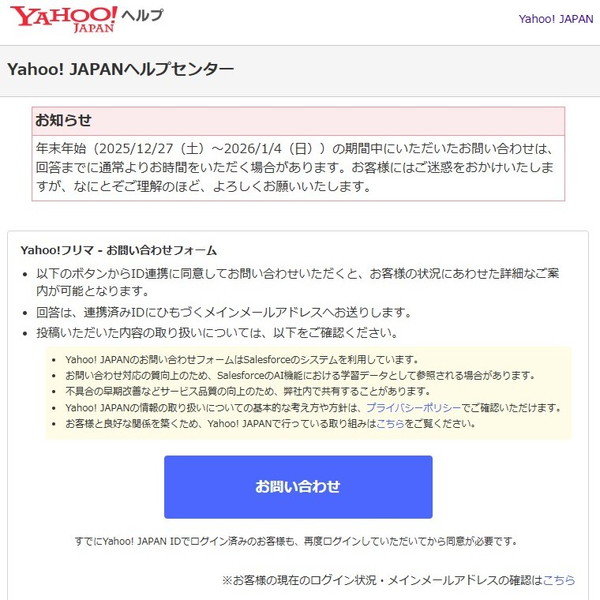 Yahoo!フリマ お問い合わせ
