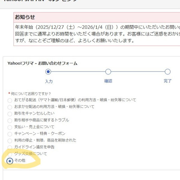 「Yahoo!フリマ」でお問い合わせをしたいのですが、どん詰まりしました。