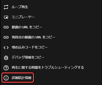 パソコンでのYouTubeの動作再生中に、プレイヤーの上で右クリックして、