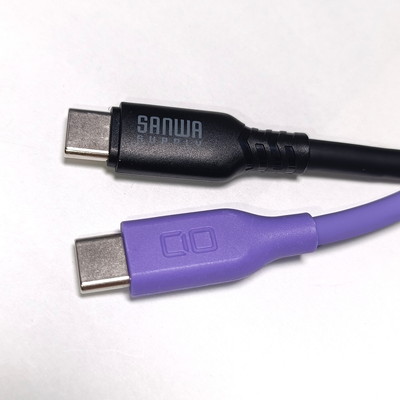 右=サンワサプライ(Sanwa Supply)の240Wシリコンケーブル・2m