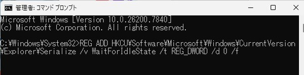 REG ADD HKCU\Software\Microsoft\Windows\CurrentVersion\Explorer\Serialize /v WaitForIdleState /t REG_DWORD /d 0 /f