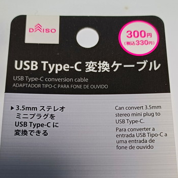 商品名が「USB TYPE-C変換ケーブル」なのですが、これだけではイヤホンから変換できることが分かりづらいですね。