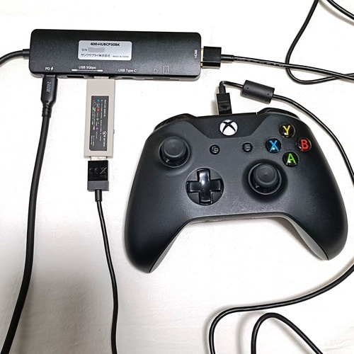 USBハブ機能で箱コンが使えるかもテストします。
