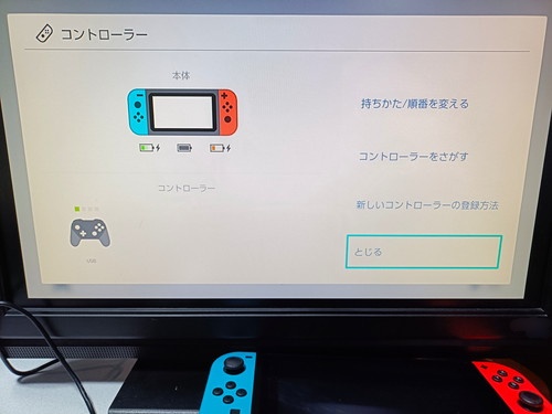 この状態だと、SwitchのJOYコン2つはホームボタン以外は操作不可能です。